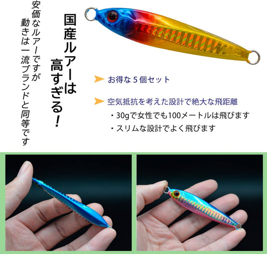 メタルジグ セット 30g or 40g or 60g 5個セッ ト スーパーライトショア リアウ ェイト