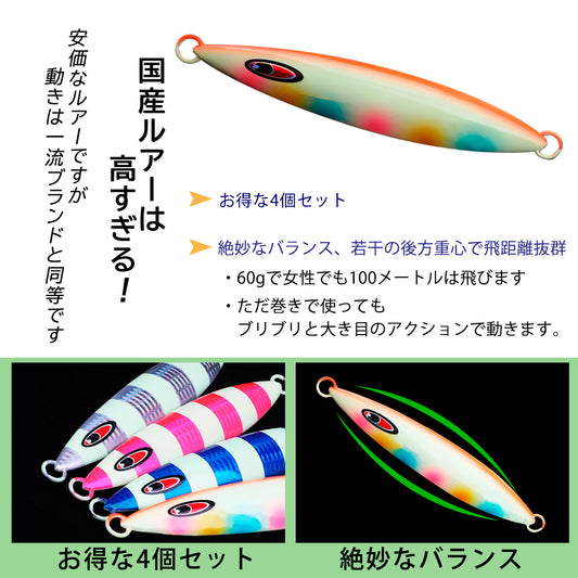 【お得な4個セット】メタルジグ セット スロージギング 【裏面がグローで凸凹】 4個セット